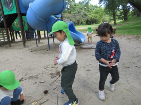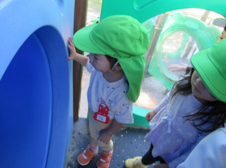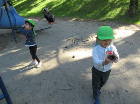 いちごぐみさんは、保育園部の同じ学年のおともだち「こあらぐみ」さんと一緒にバスに乗って、寺尾中央公園に行ってきました。