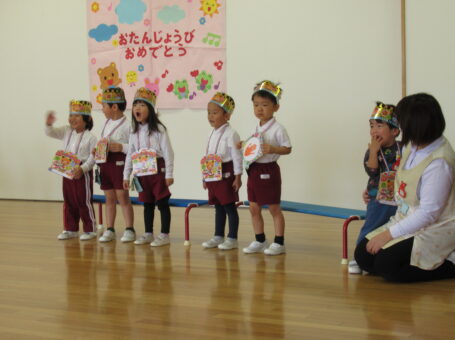 この日は10月生まれの誕生会。10月は幼稚園の中で一番誕生児が多い月です。
