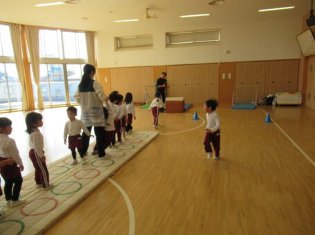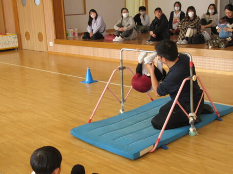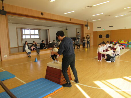 この日は体育教室の参観日。お家の人に見てもらえてうれしいな!
