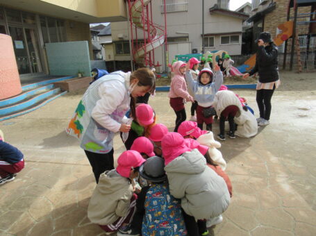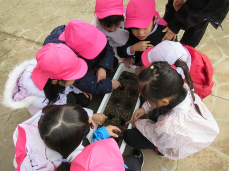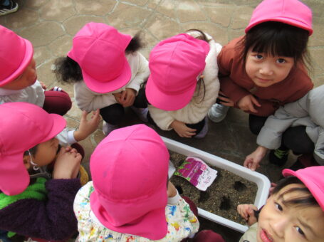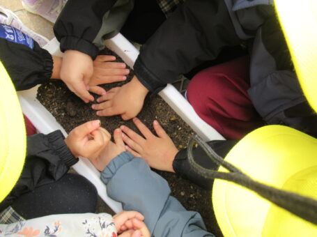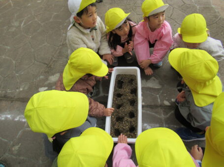 みんなでお願いしながらちゅうりっぷの球根を植えました。