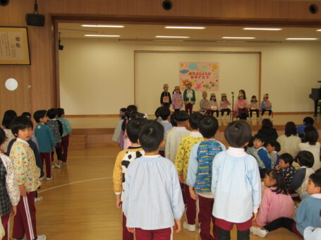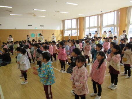 園長先生からクリスマスにちなんだ手遊びをしていただき、たのしかったね!