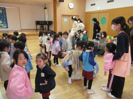 フォークダンスをしたよ! わいわいらんどさんもいっしょにクリスマス会をしました。
