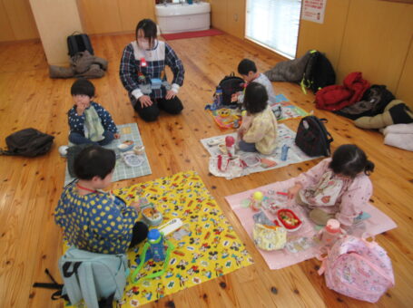 自分たちでシートも頑張って敷いてお弁当をたべたよ!