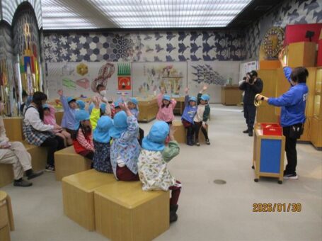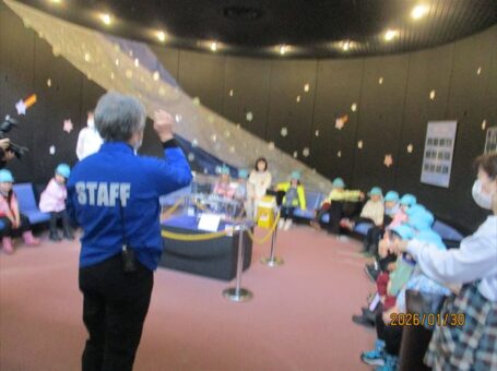 プラネタリウム前に説明を静かに聞きました。